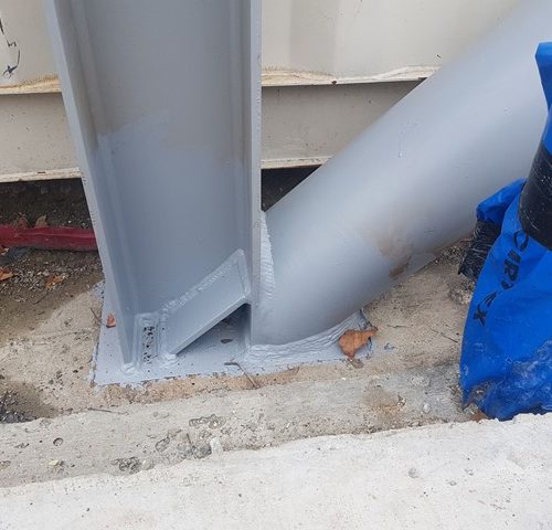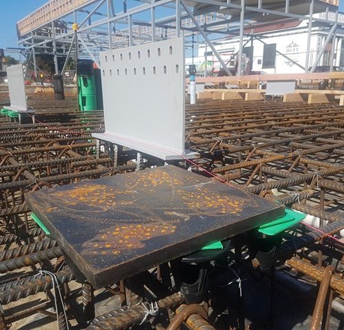 In the East-West direction the walls, mezzanine and roof were all tied back to and bolted through the West Elevation wall onto a solid welded steel frame with vertically cantilevering columns which were then provided with a full moment fixity welded detail to an extension of the reinforced concrete foundation for High Street Building which was poured right up to the existing foundation of 37 High Street…