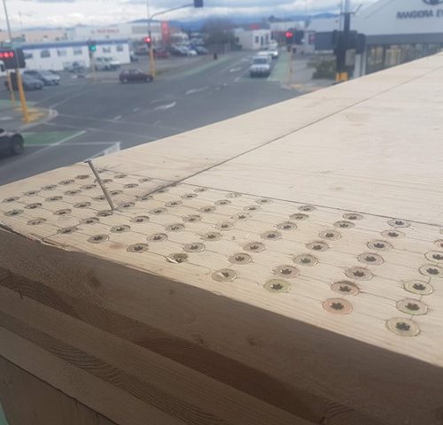 Once the earthquake loadings were quantified for each CLT wall panel from the spreadsheet and the various overall wall overstrength factors were applied, we utilized the Pro:Holz CLT Design Guide, the FP Innovations CLT Handbook by the Canadian Wood Council, Eurocode 5 (as NZS 3603 doesn’t presently include any provisions for CLT design), the HNT ETA* and the SPAX ETA* (*European Technical Approval) to complete the various member and connection designs…