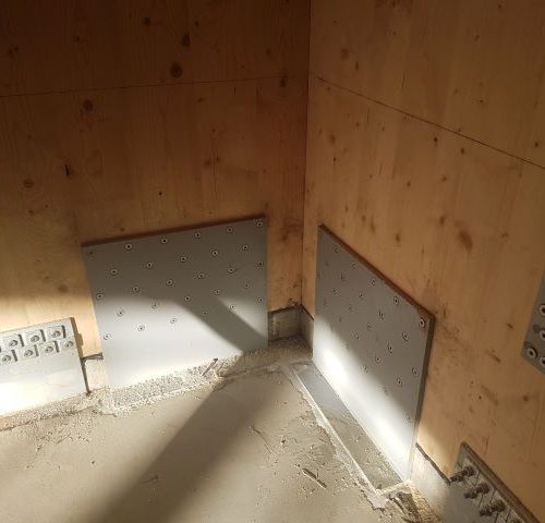As an aside, in some high load hold down (push-pull) locations at the ends of stitched CLT wall panels the crushing load (perpendicular to the grain) imposed on the CLT floor panels exceeded capacity so we needed to locally provide full CLT floor panel depth compression reinforcement (in the form of closely spaced fully threaded SPAX screws) to assist the transfer of forces through the CLT floor panels and down into the CLT wall panel below…