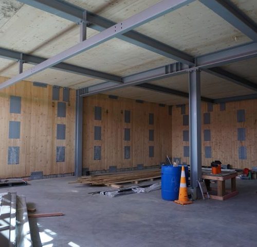 When construction reached the stage where all the CLT wall, lintel and floor panels were in place (along with the roof being in place) but only some external glazing was in place, Contract Construction noticed during a wind gust event that the bare (unloaded) CLT floors were vibrating up and down on their secondary hot-rolled steel beams…