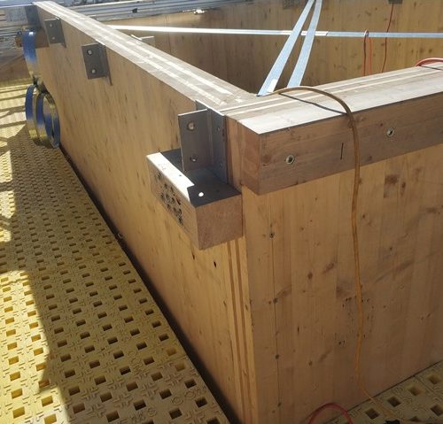 For a project which didn’t require a clear CLT wall panel height exceeding 3.5m between CLT floor panels, we discovered that German CLT manufacturer Binderholz offer up to 20,000 length x 3,500 width CLT panels (these would need to be cut down to 12,000 lengths for transportation in 40-foot open-top containers) which could be turned on their side to enable long squat wall panels (which would remove the need to provide stitch plates and individual shear plates)…